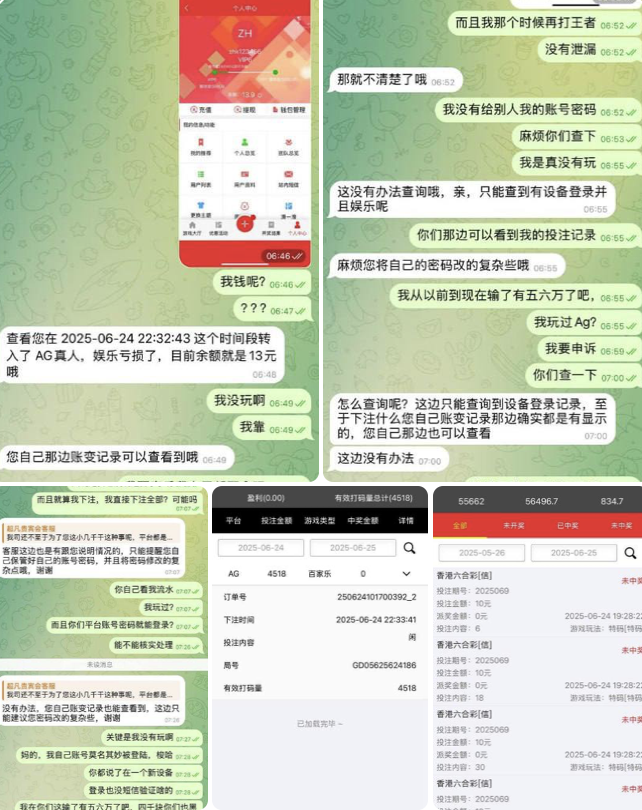 曝光内容:本人是六合彩玩家,之前在该平台输了几万块后就慢慢打澳门六合彩,今天早上登录的时候发现账号只剩13块钱,显示昨晚被恶意下注了一单百家乐梭哈,本人自己也没有玩过百家乐,甚至不会玩,也没有提供给别人自己的账号密码,客服也说了有新设备登录我账号,还是不处理。