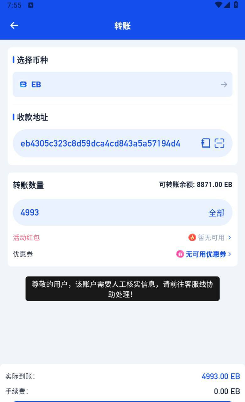 EB和米兰平台就要这么搞我,我已经提款成功,你们要钱包给你们反馈?EB本来就是不实名就可以转账的,你们凭什么要限制我转账?如果我绑定的是imtoken 你们也要imtoken实名?提银行卡你们也要银行让我实名?