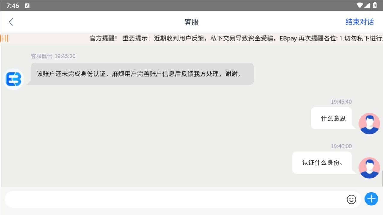 曝光内容:强制要求我完成实名认证,请问这行灰产行业能给你们提供手持和实名吗?就因为EB是你们平台自己做的钱包,就可以为你们平台大开方便之门?骗分,撸极速你们EB平台处理也就处理了,请问我一个正常玩家,还是输钱的有什么错?