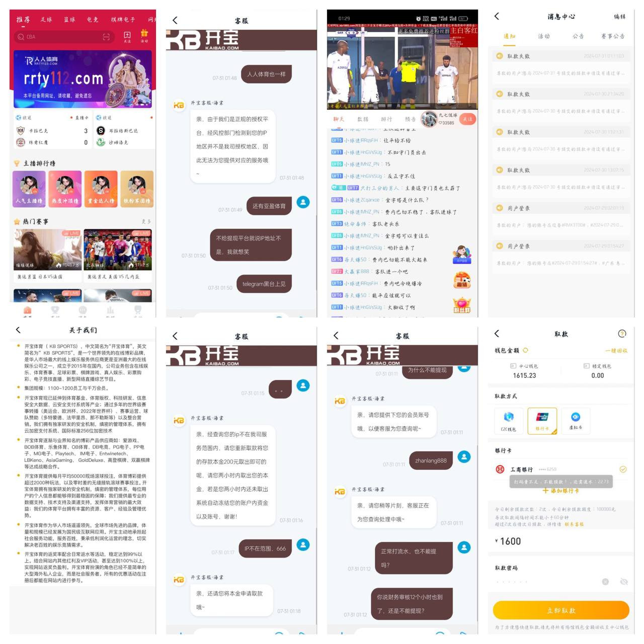 曝光内容:曝光黑平台开宝体育,赢钱之后一开始说财务审核12个小时,后面说不在IP范围,就是不给提现。人人体育推广的,不知道骗了多少人,换了好几个名字了,直接账户拉黑,目前里面还有推广,亚盈体育,大家得当心上当受骗。