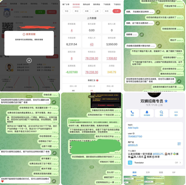 曝光内容:这家平台他把你直属下级的返佣费用计算在你的充提差里面的,而且你得不到一点好处!如果不接受这个要求,他们就取消你的代理资格,一分钱都不给你,如果你是55代理,赶快看下你们的代理线充提差正不正常,因为这个费用他不算在你的下级领取奖励中,但是佣金的提款费用却是算在你的充提差额中。