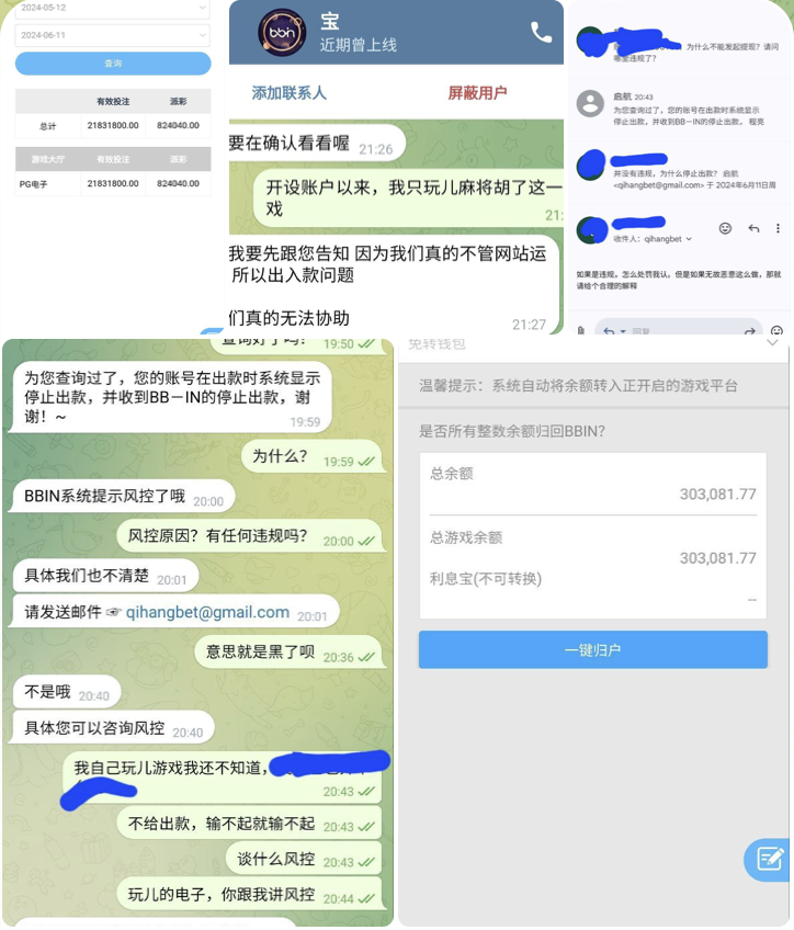 曝光内容:柬埔寨启航娱乐城,启航娱乐城-官网: 7h777.com 官方频道: @qihangbet 支持汇旺和U充提汇旺号 51234,平台无故黑我三十万,给不出任何合理解释,直接冻结我账号,平台没有格局,能输不能赢,希望各位老板小心下一个受害人就是你,这种没有格局的平台,大家还是紧急避坑。平台风控将责任推给BBIN官方,请问AG和BBIN还会管你平台出不出款吗?哪里找来的没经验的风控。活生生把一个还不错的平台做成杀猪盘。我一个打电子的,你告诉我风控,我风控你全家。大家避坑。