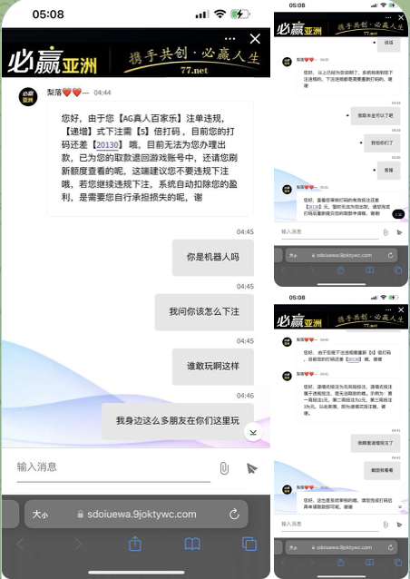 曝光内容:必赢亚洲老台子,一年多没玩充值2000打到4000让重新打流水,递增违规理由都来了,最后打到12000还是不给提,又加10倍流水,黑平台转告一下,不要再充值了,能黑一点算一点的垃圾平台,玩不起开你妈比了