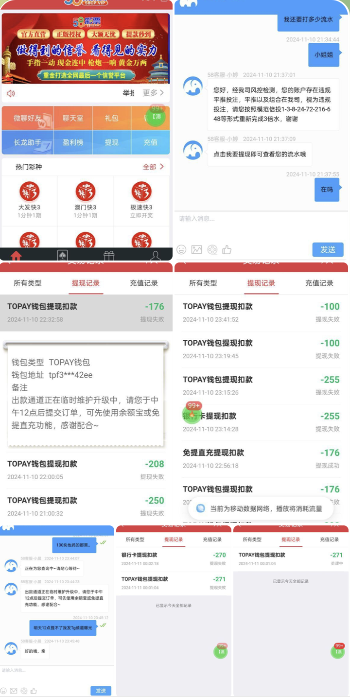 曝光内容: 58彩票黑平台,罚了15倍流水,并且还只能倍投,说我不倍投打完了也不给提款。黑平台,大家避雷!
