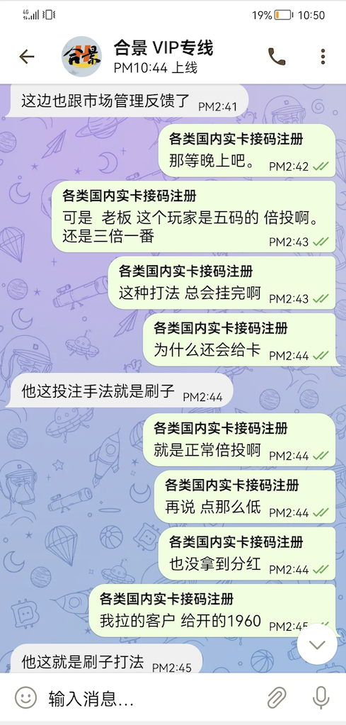 曝光内容:在合景平台打的新奇趣,正常的五码倍投,照着众赢打的说我对刷。 还要我十分钟内提供手持身份证银行卡视频,还让我开手机网络打开地图定位在当地录视频,说十分钟提供不了直接冻结。