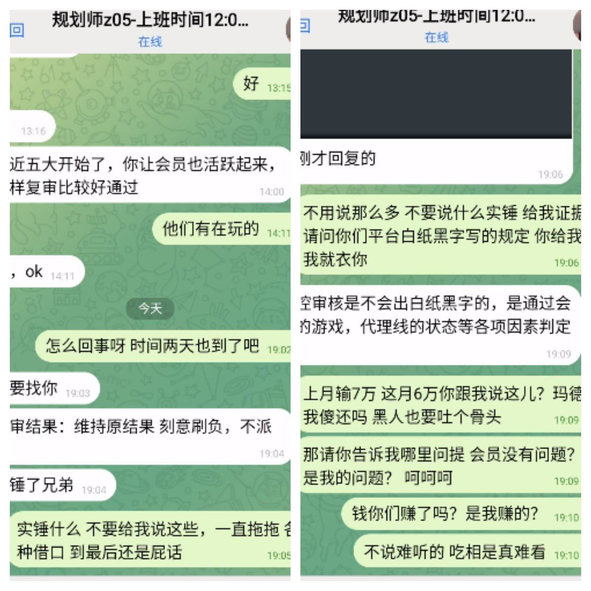 你要说个全是玩高赔率刻意输我还能听一下,觉得你说的还有点道理,如果这就是你们的审核水平我真的给你们点个赞,真的吃相不要太难看了,我现在是反应过来了,让你玩的意思是让你多输点,多黑你一点,你这电诈手段一个拖字诀被你们玩的炉火纯青牛B。