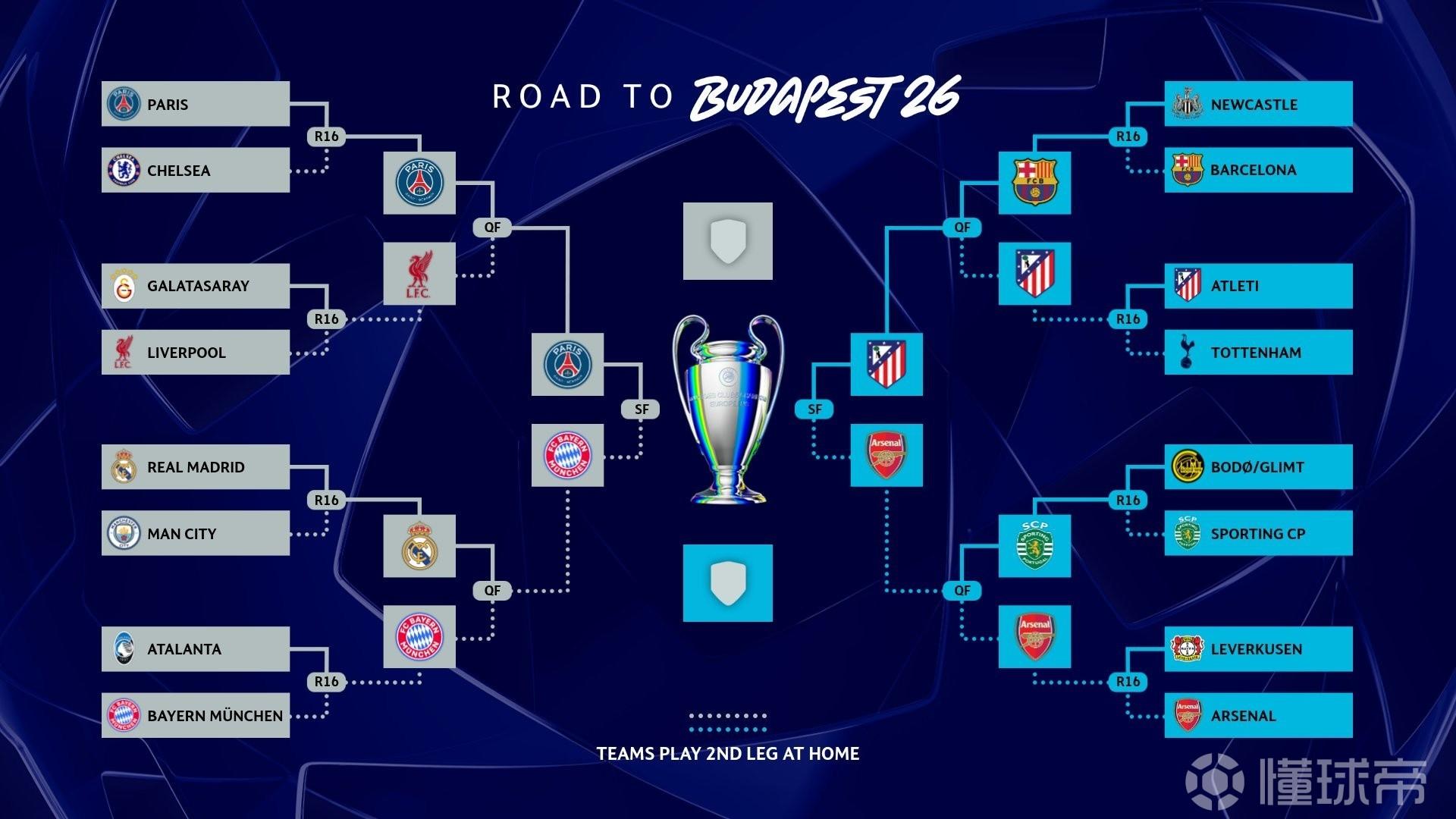 2025-26赛季欧战四强球队出炉,其中英超4队,西甲德甲法甲各2队,葡超与乌超各1队,意甲宣告全军覆没。