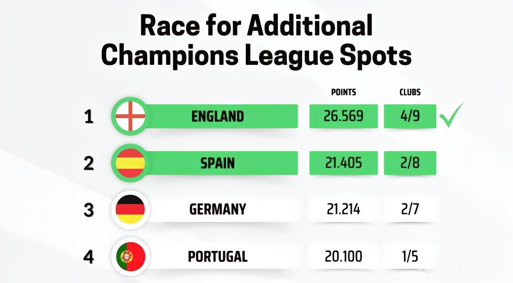 欧冠第五名额争夺形势